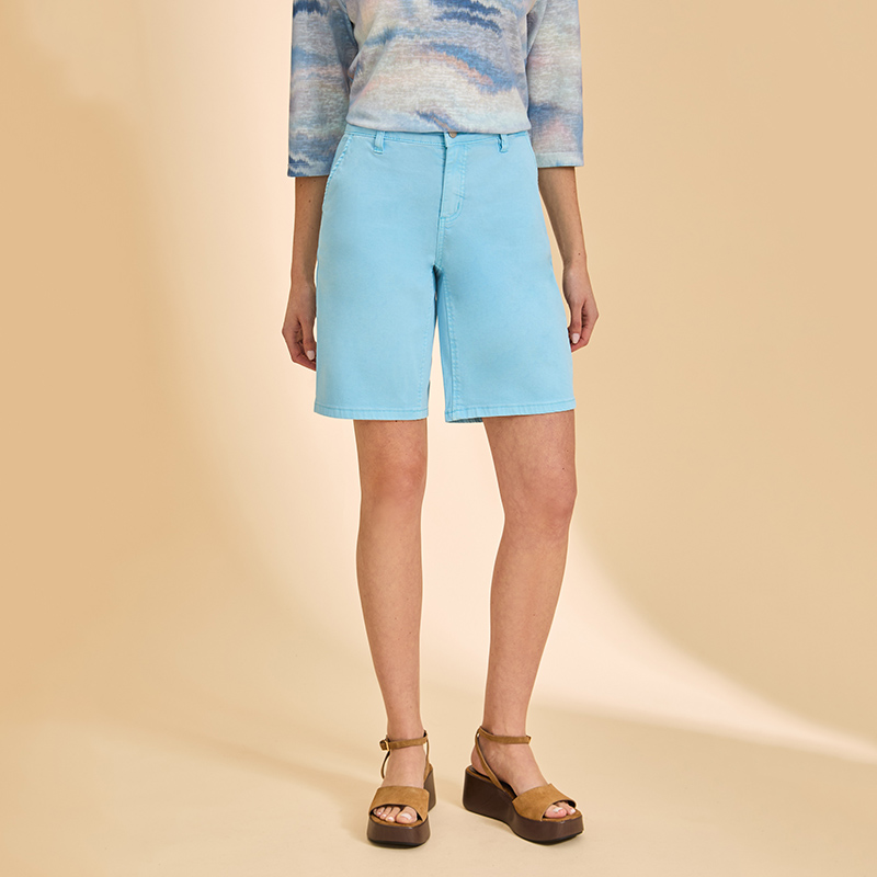 Bermuda taille régulière « Olivia », fermoir et bouton, poches en biais.