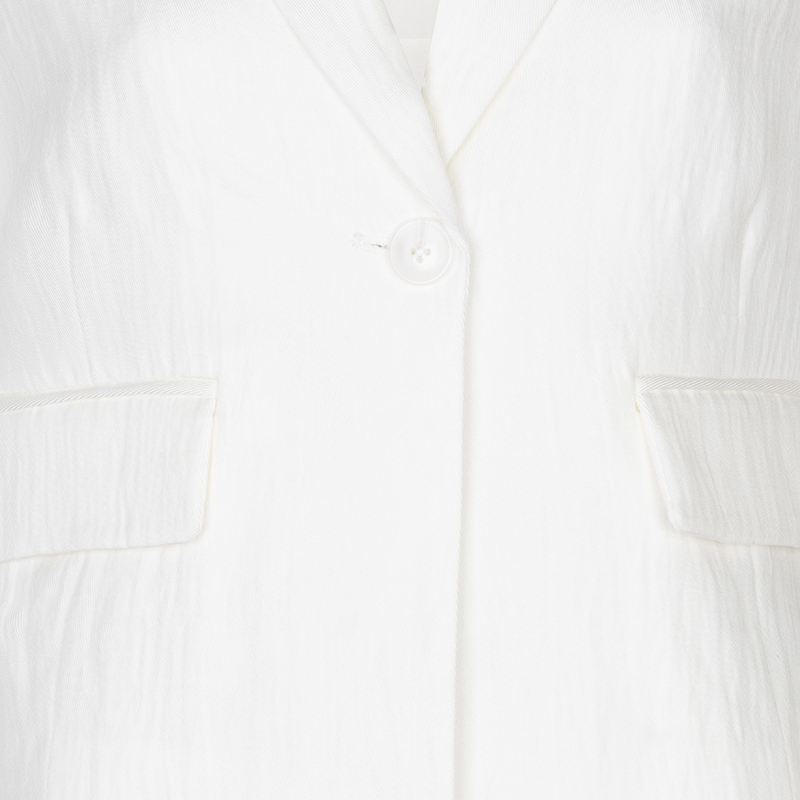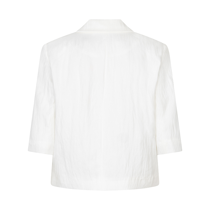 Blazer à manches aux coudes, col tailleur classique avec un bouton.