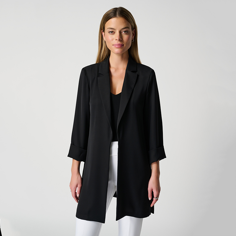 Blazer à manches 3/4 avec revers, col tailleur sans bouton.