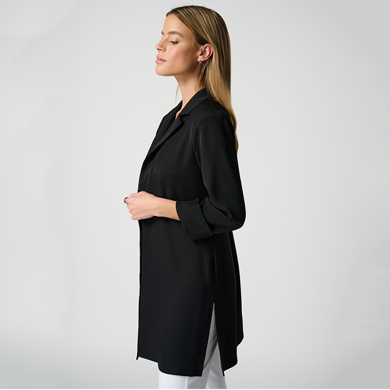 Modèle long ouvert de chaque côté, très beau tissus soyeux, infroissable et non doublé. Disponible noir.