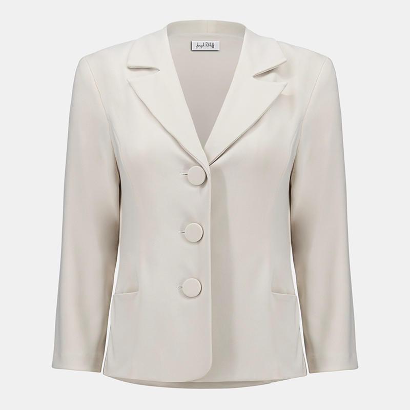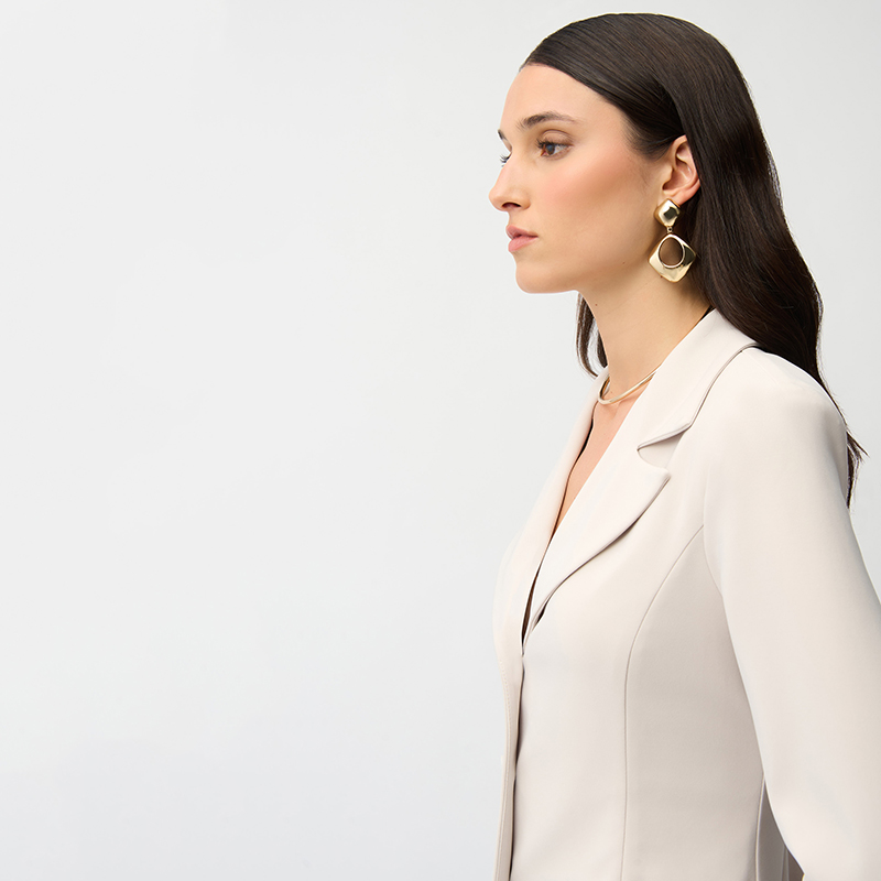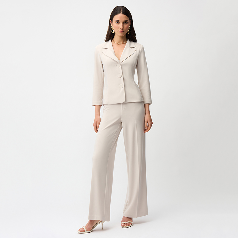 Ce modèle est très élégant avec son pantalon assorti, doublé au niveau du corps, poches aux hanches, gros boutons recouverts ton sur ton.