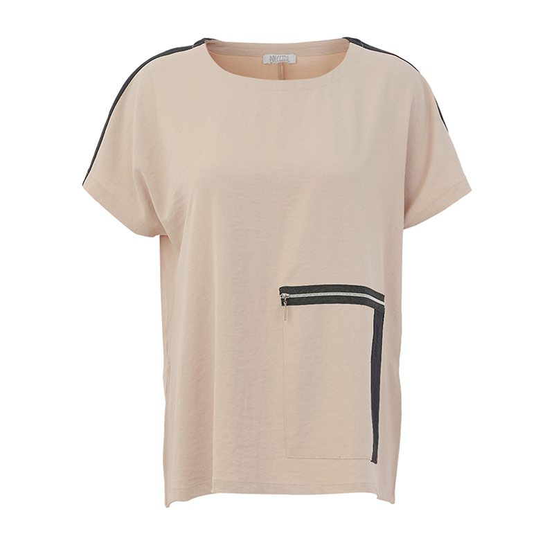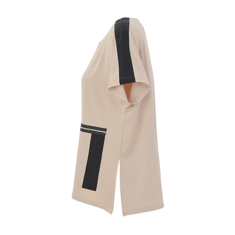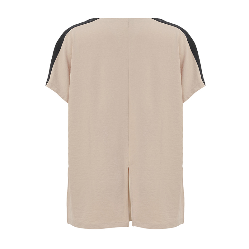 Blouse à manches courtes sans coutures aux épaules, encolure ronde.