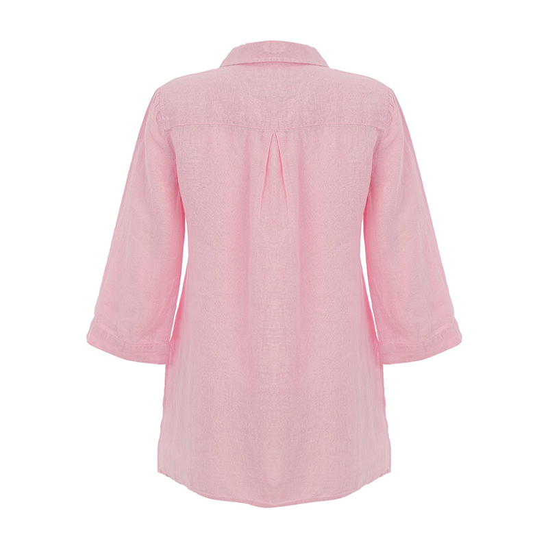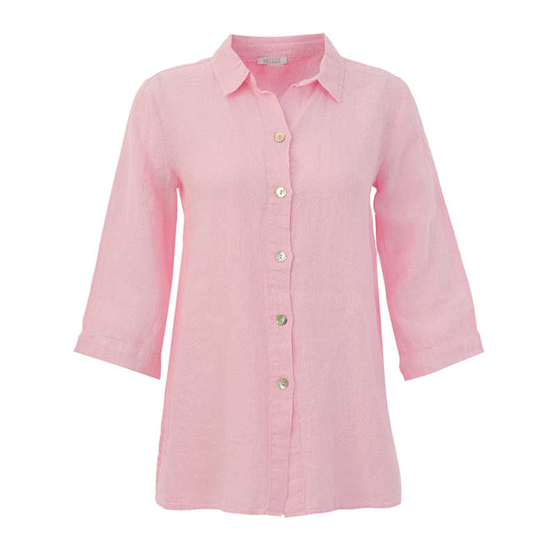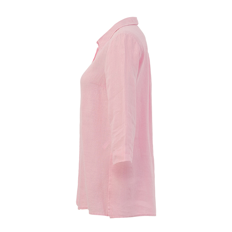 Blouse en lin uni à manches 3/4, col chemisier ouvert.