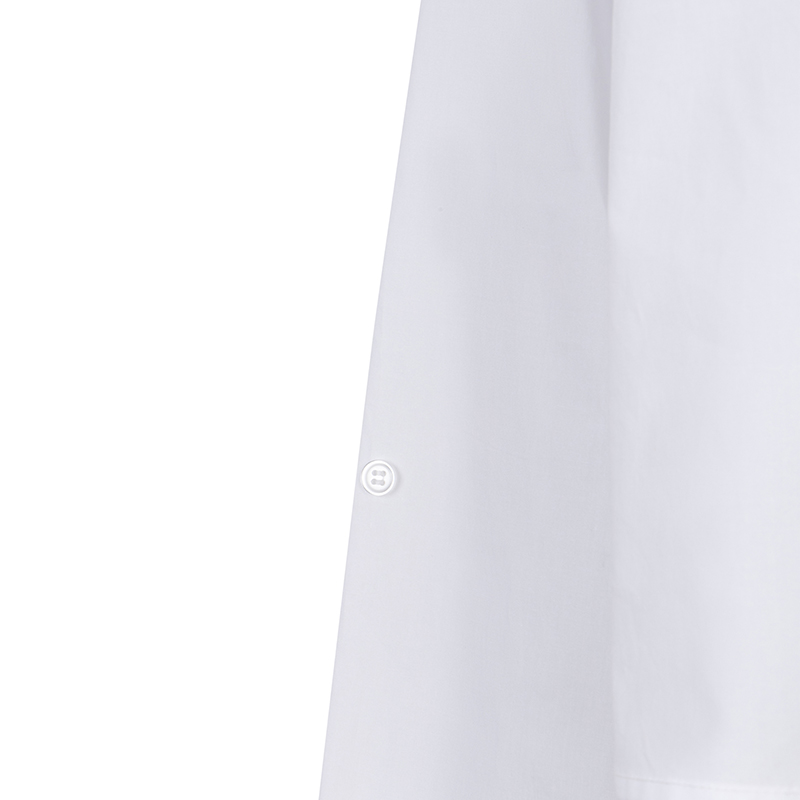 Blouse en coton à manches longues, les coutures aux épaules sont basses, col classique au cou.