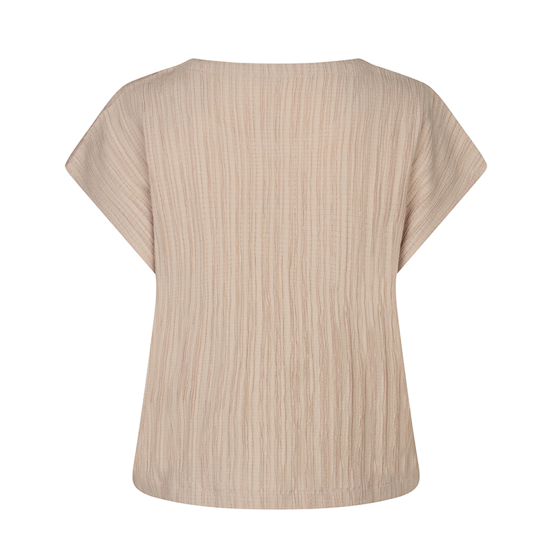 Blouse ultra légère à manches cap sans coutures aux épaules, encolure ronde légèrement dégagée.