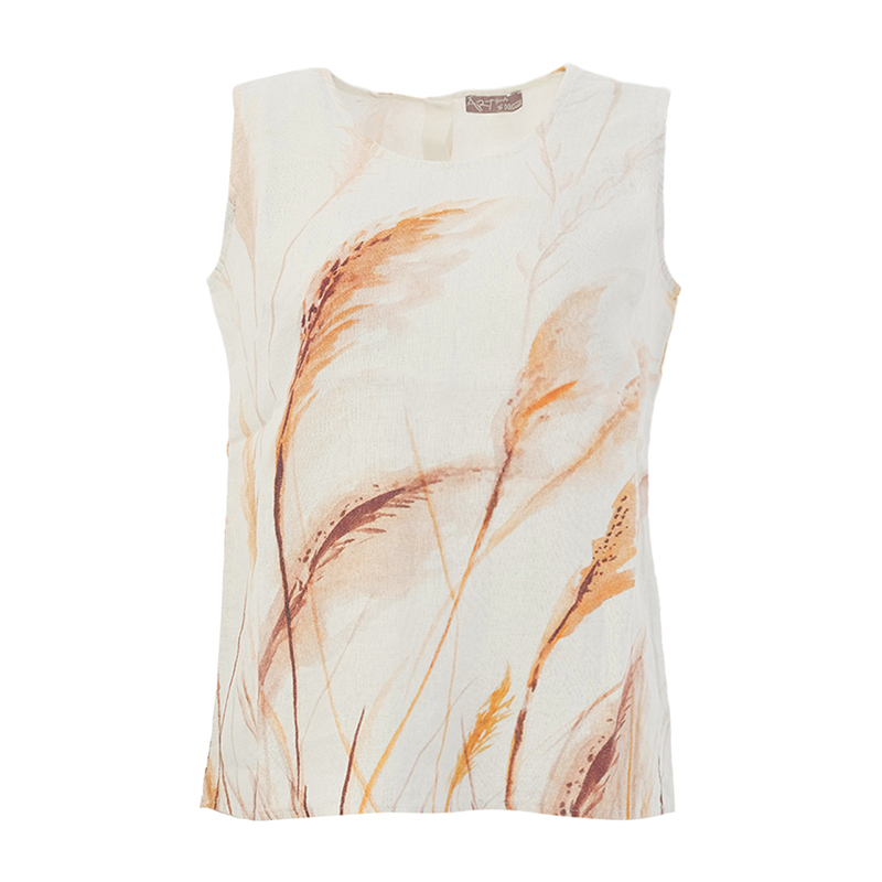Camisole en lin, bretelles larges, encolure ronde dégagée.