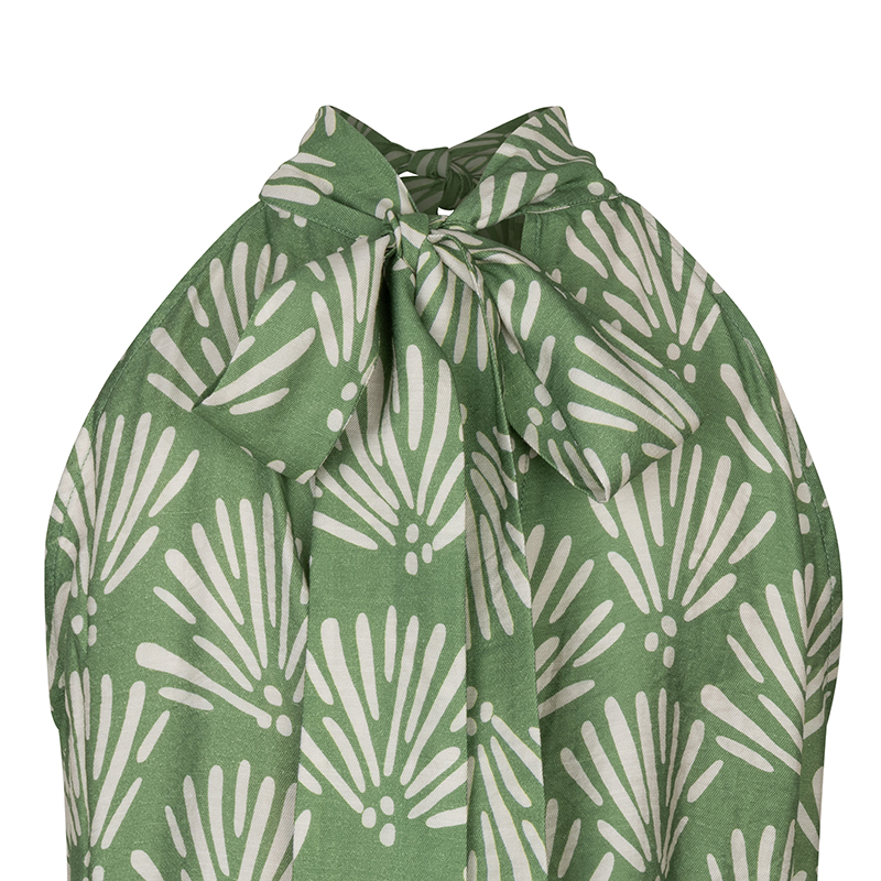 Modèle stylisé et féminin, matière légère imprimé vert.