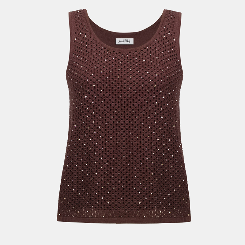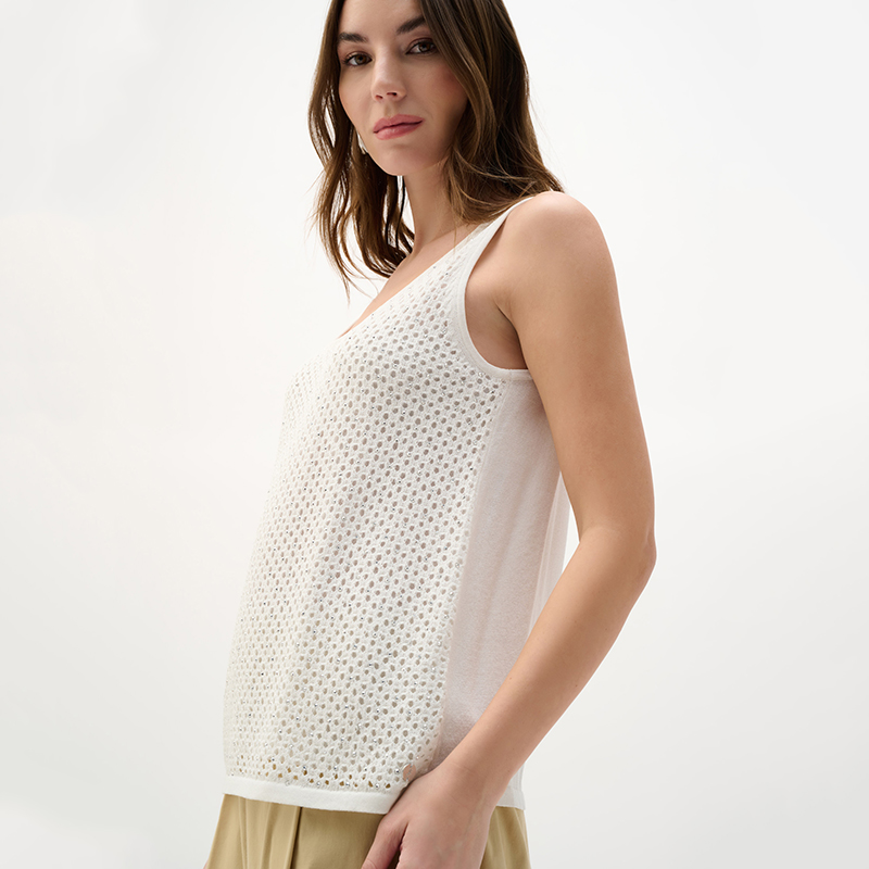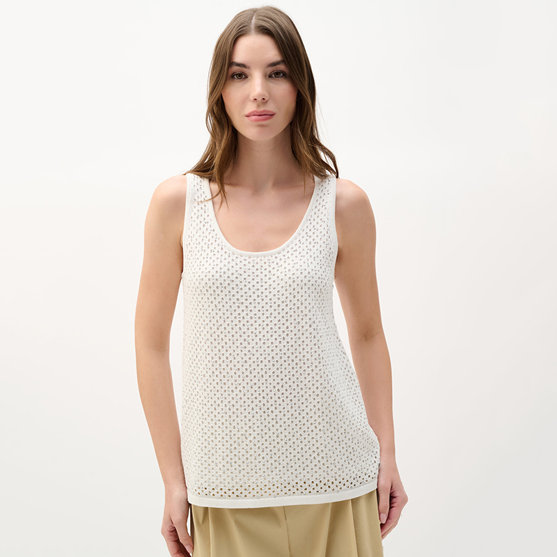 Camisole en tricot sans manches, encolure ronde dégagée.