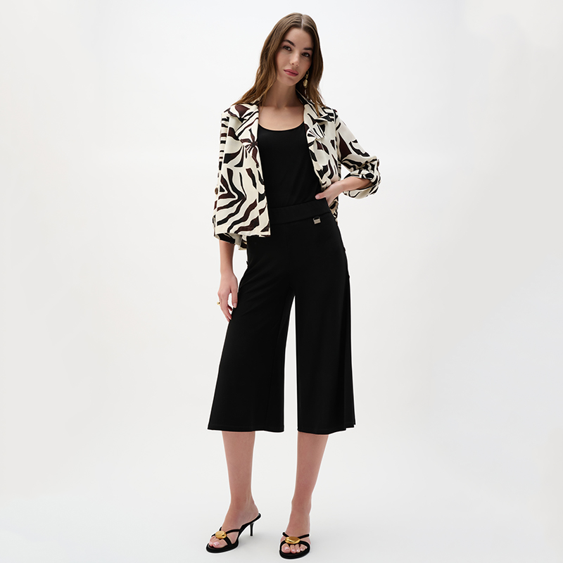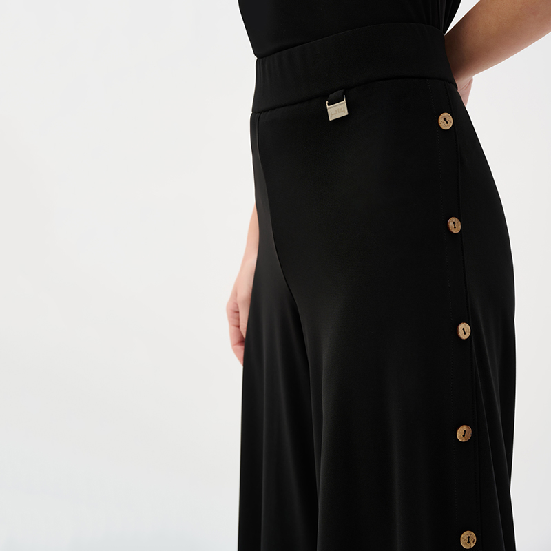 Modèle jambes larges, petits boutons bruns sur le côté avec une grande ouverture au bas, beau classique passe partout.