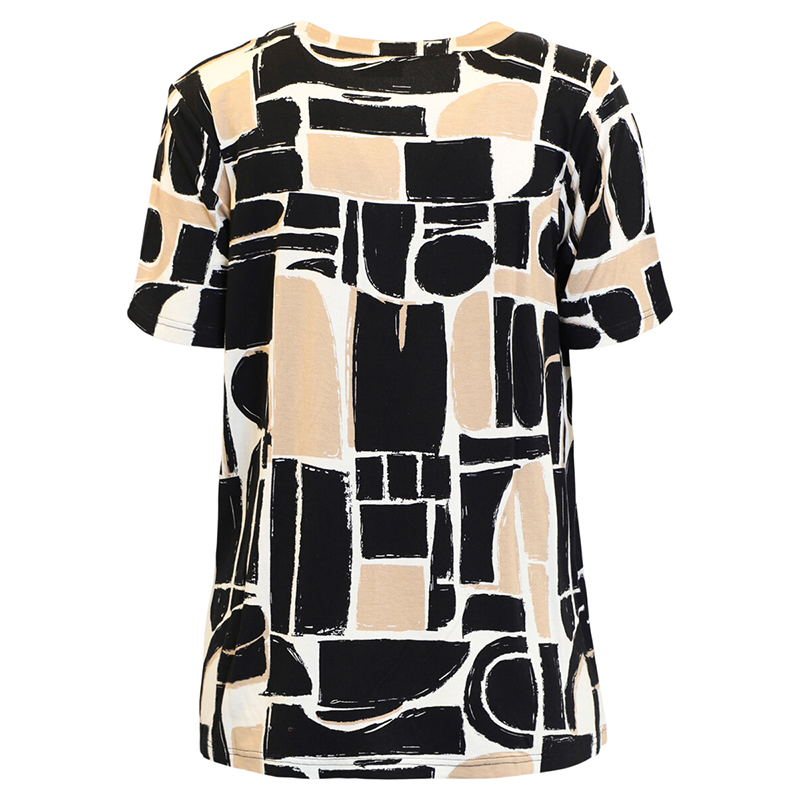 Chandail en jersey à manches courtes, encolure ronde finie en pointe.