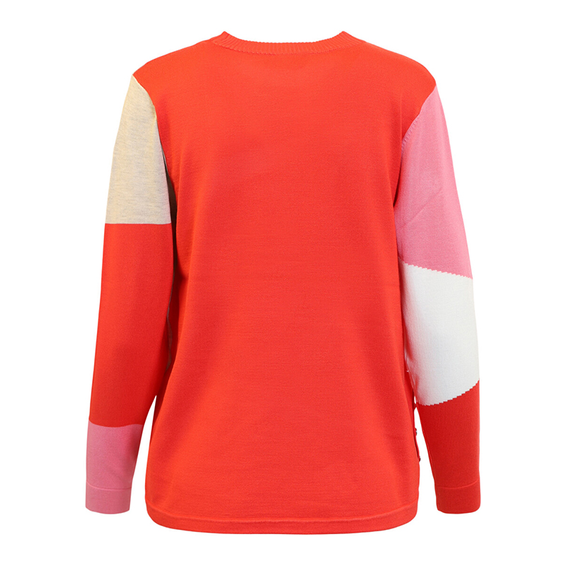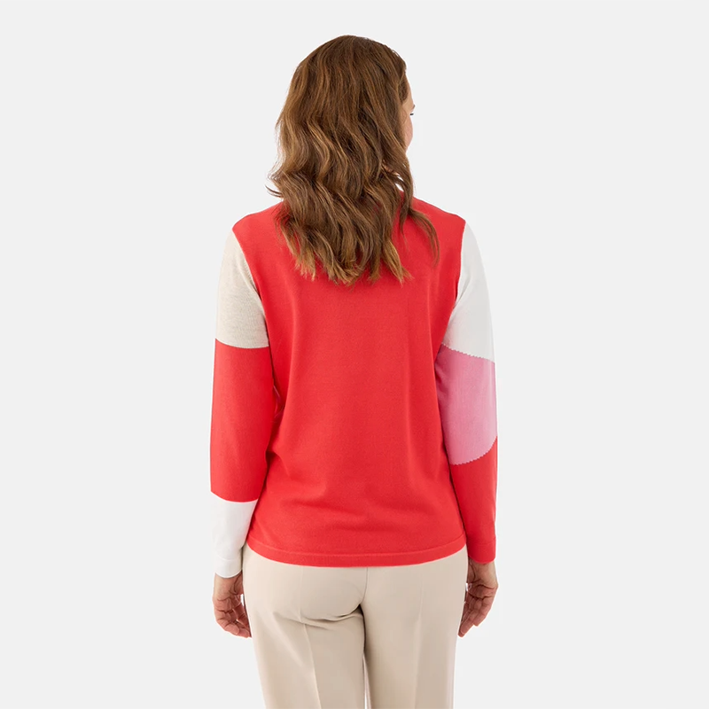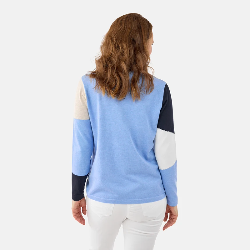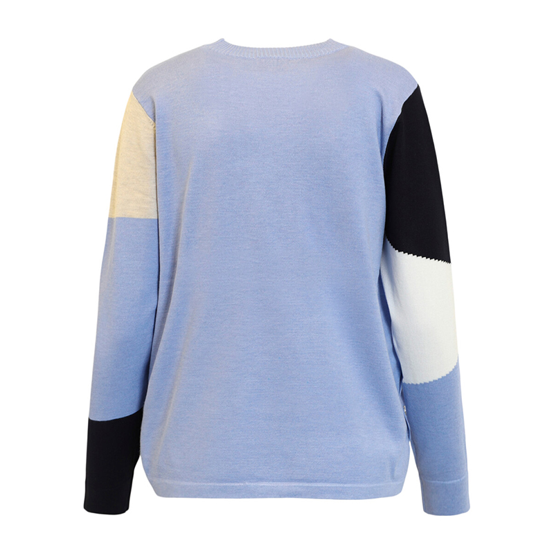 Chandail en tricot fin à manches longues, encolure ronde près du cou.
