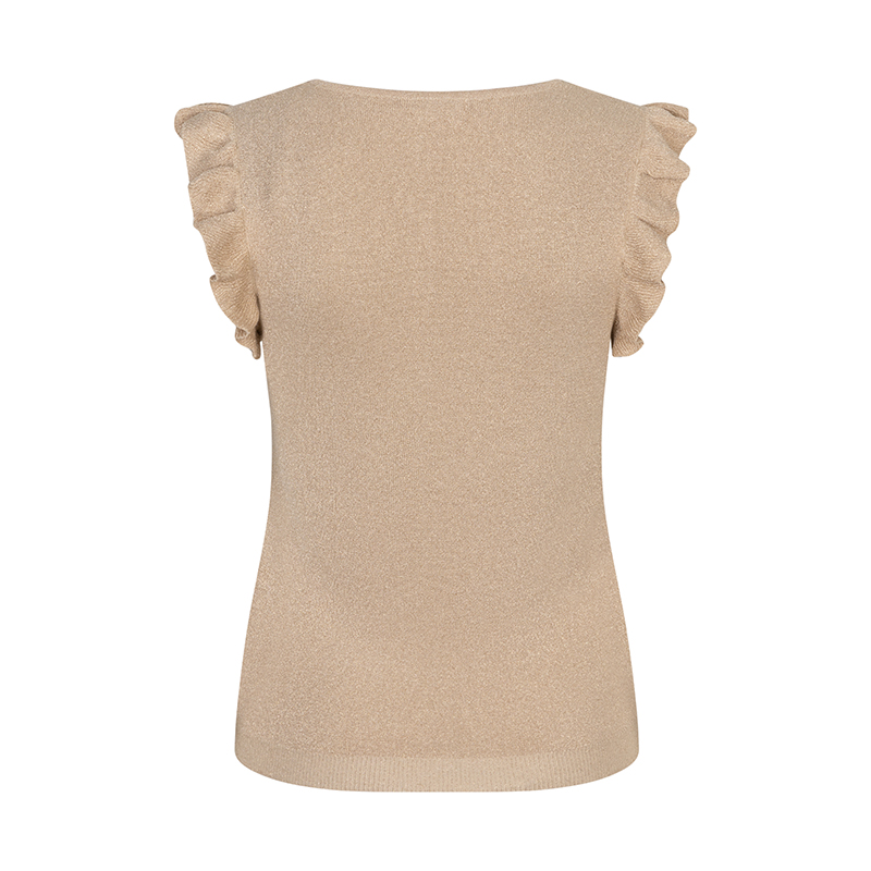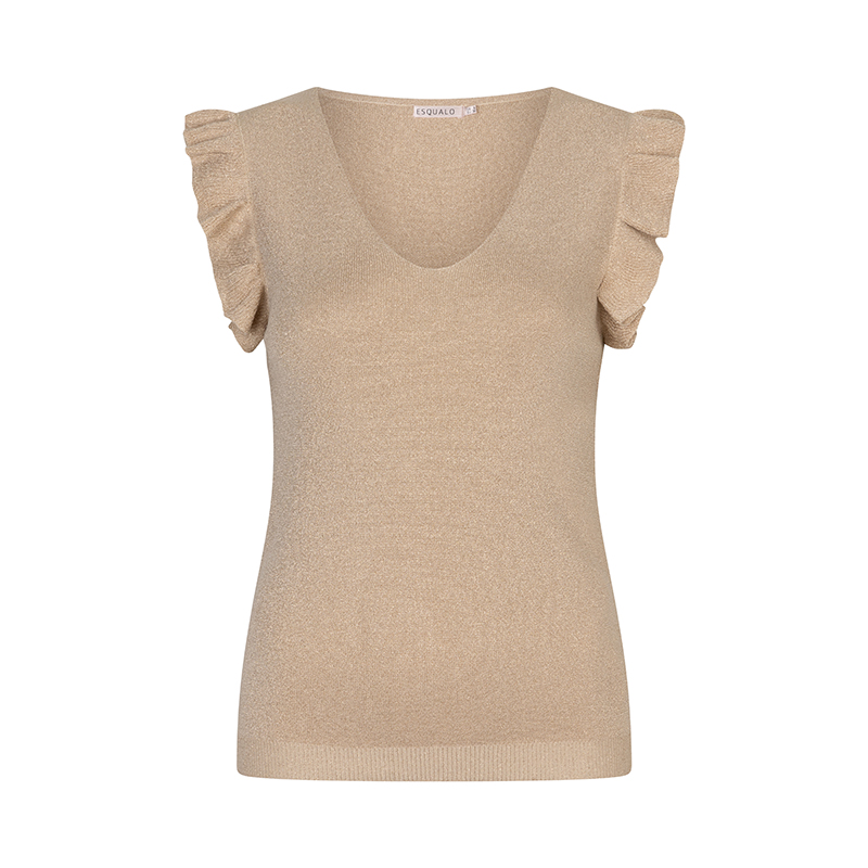Chandails en tricot fin à sans manche finie avec un frill pour look féminin, encolure en pointe.