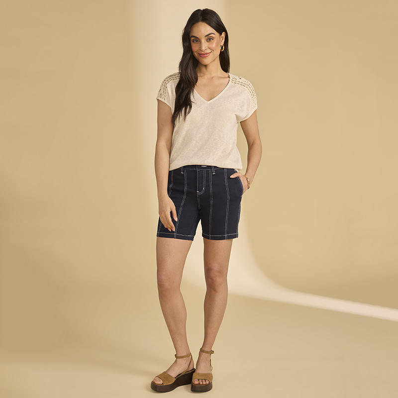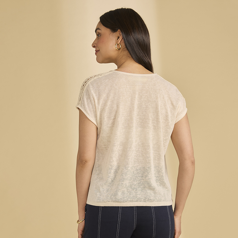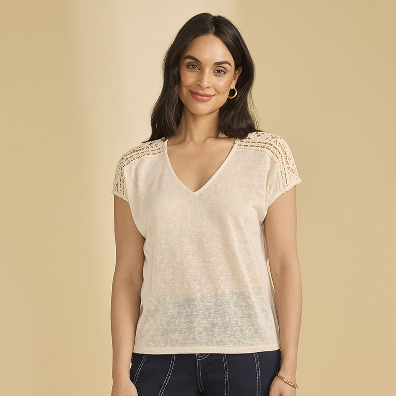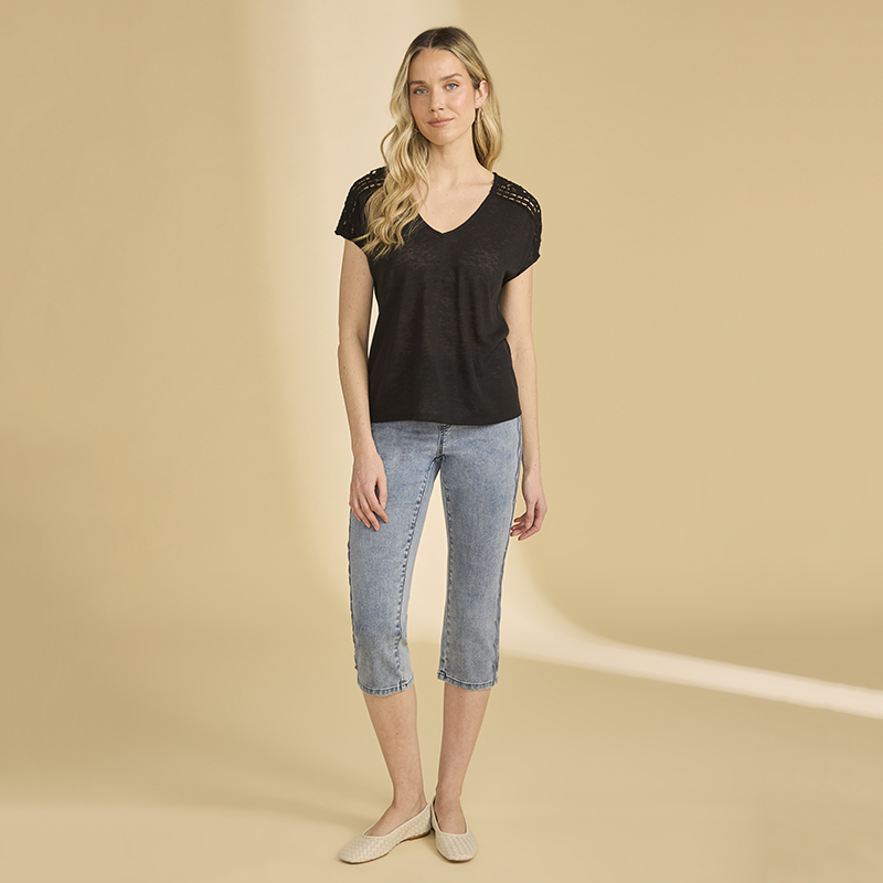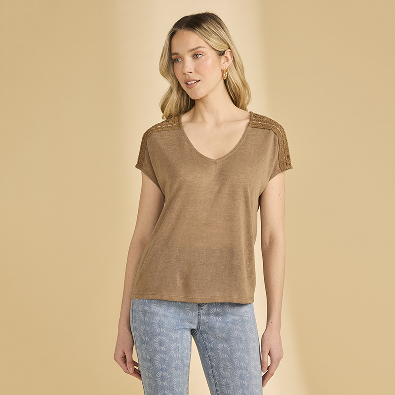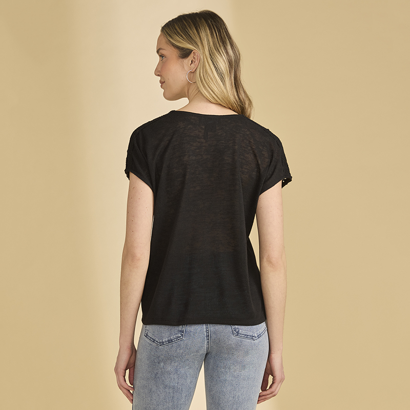 Chandail en jersey très léger et souple, manches cap sans coutures aux épaules avec crochet sur le dessus.