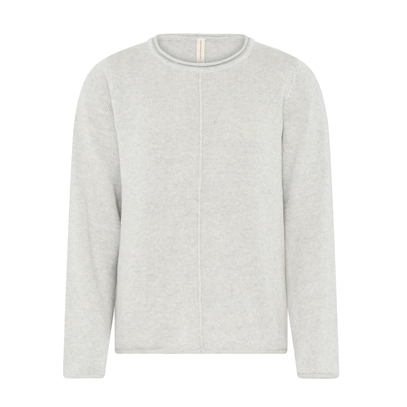 Chandail en tricot de coton organique à manches longues, encolure ronde près du cou.