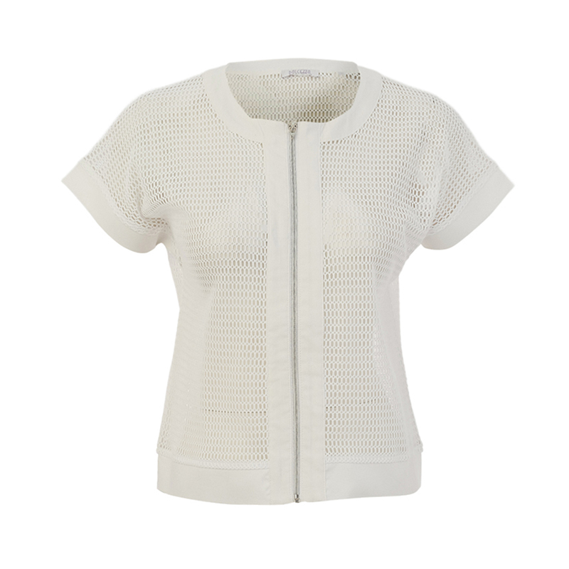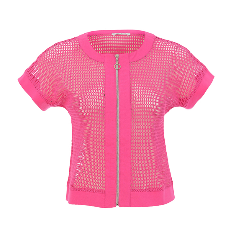 Jacket en filet à manches cap sans coutures aux épaules, sans collet, fermeture éclair.