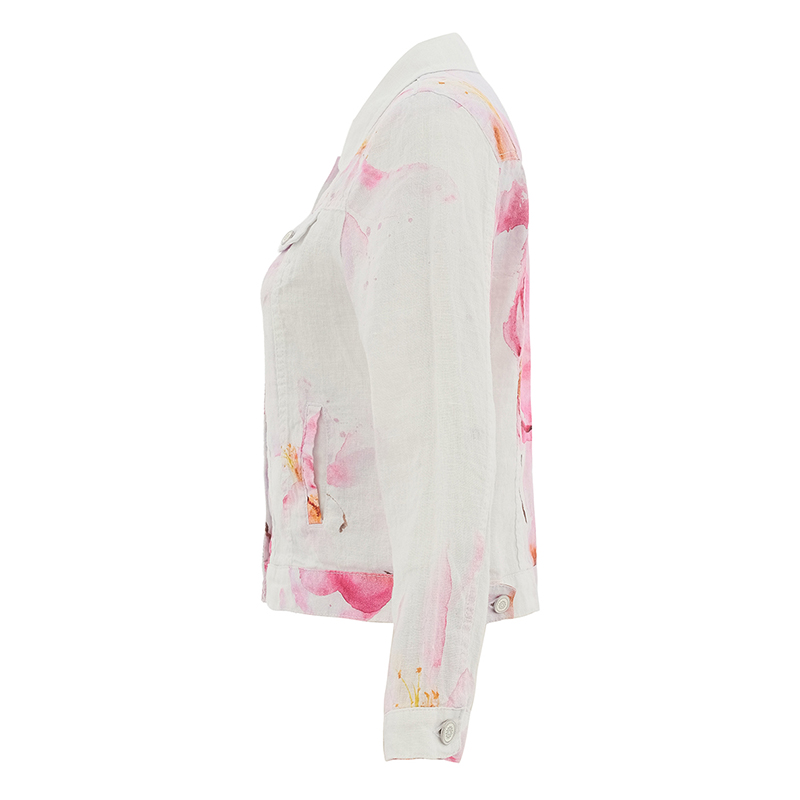 Jacket en lin à manches longues, col au cou avec boutons.