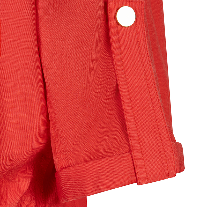 Jacket à manches courtes aux coudes, col au cou avec des boutons pressions dorés.