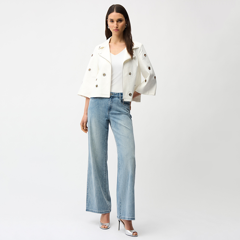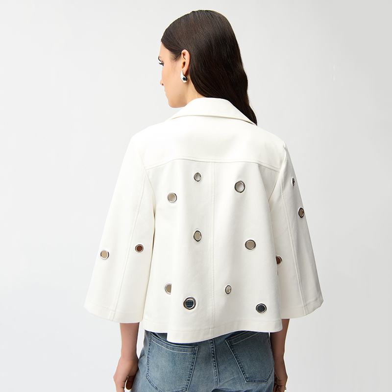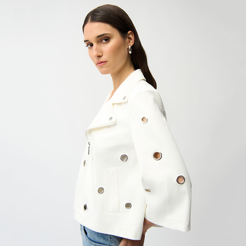 Modèle court et légèrement évasé, les œillets argentés donnent un style original à cette veste ❤️️ non doublé.