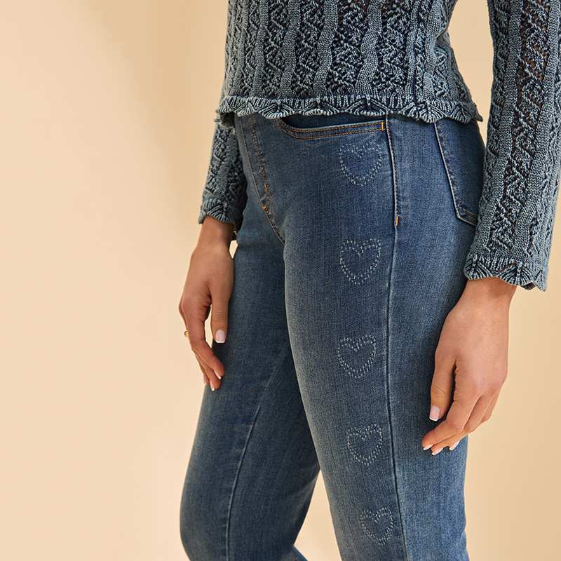 Modèle avec de jolis cœurs discrets sur le côté extérieur des jambes 💙.