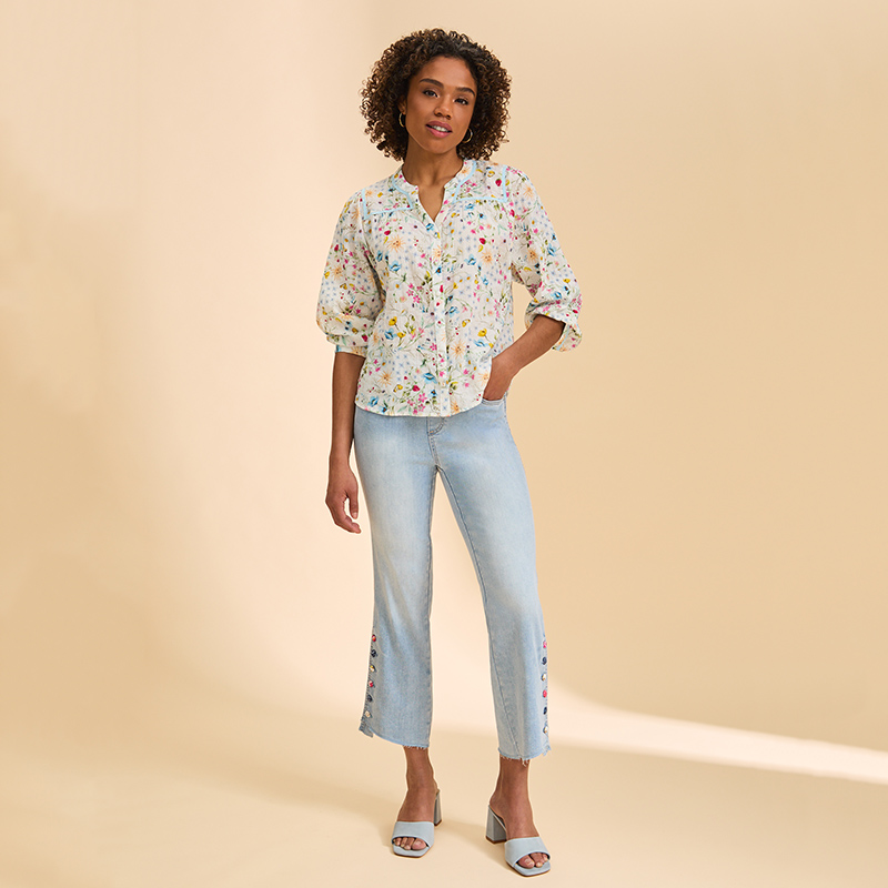 Adorable, ce modèle asymétrique au bas avec une série de jolis boutons assortis 🤩.