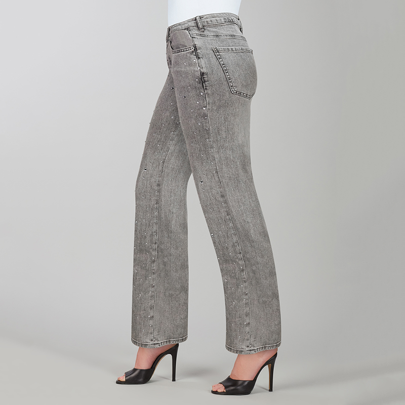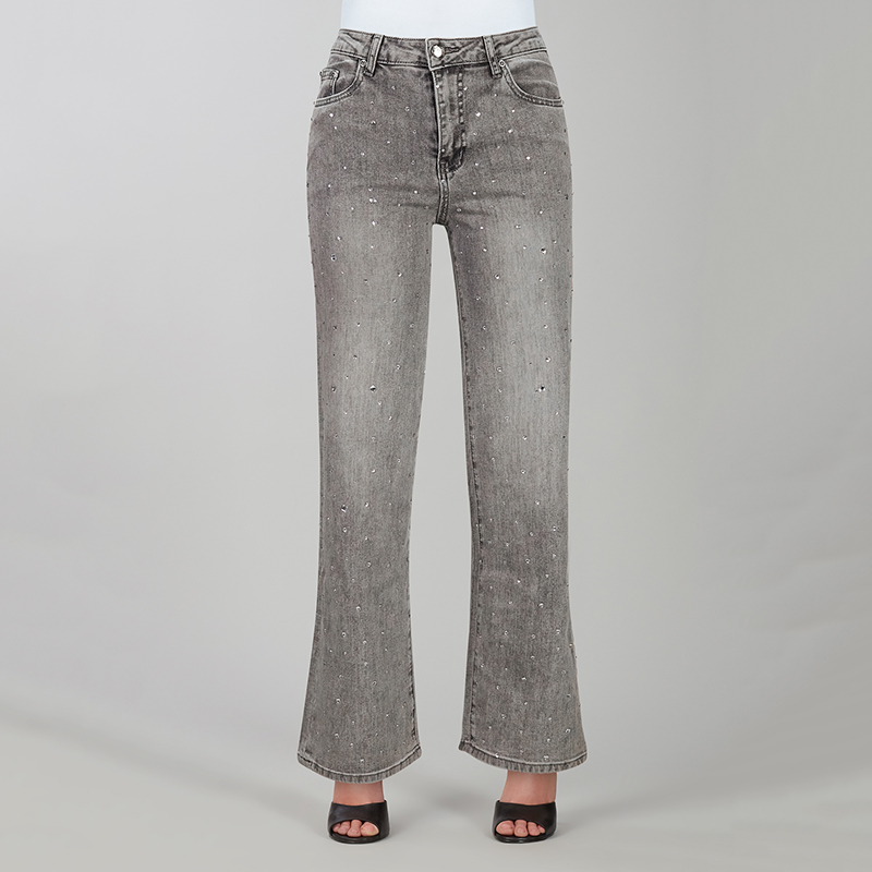 Modèle avec des pierres argentées au devant des jambes, disponible gris pâle.