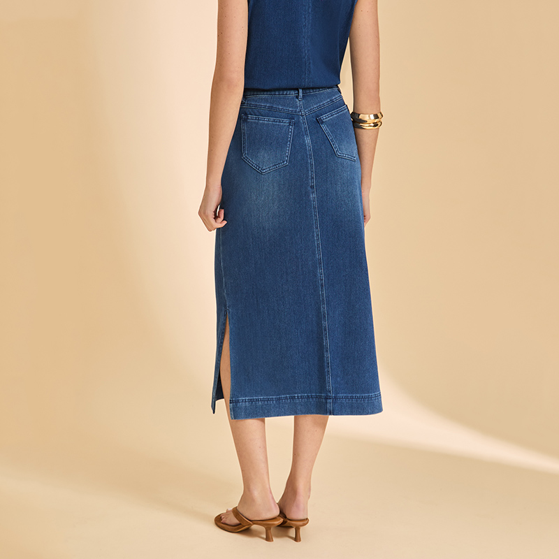 Modèle en tricot de denim souple, très extensible et ultra confortable.