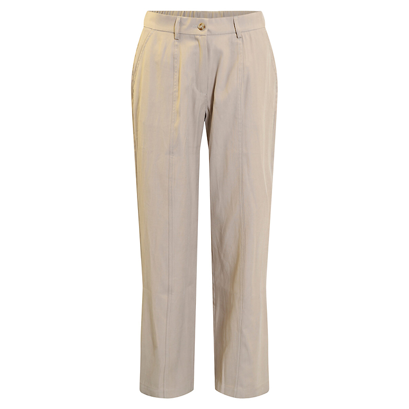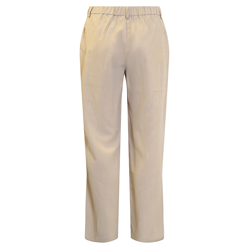 Modèle jambes droites à double coutures sur les cuisses, poches en biais, disponible beige.