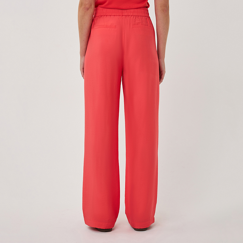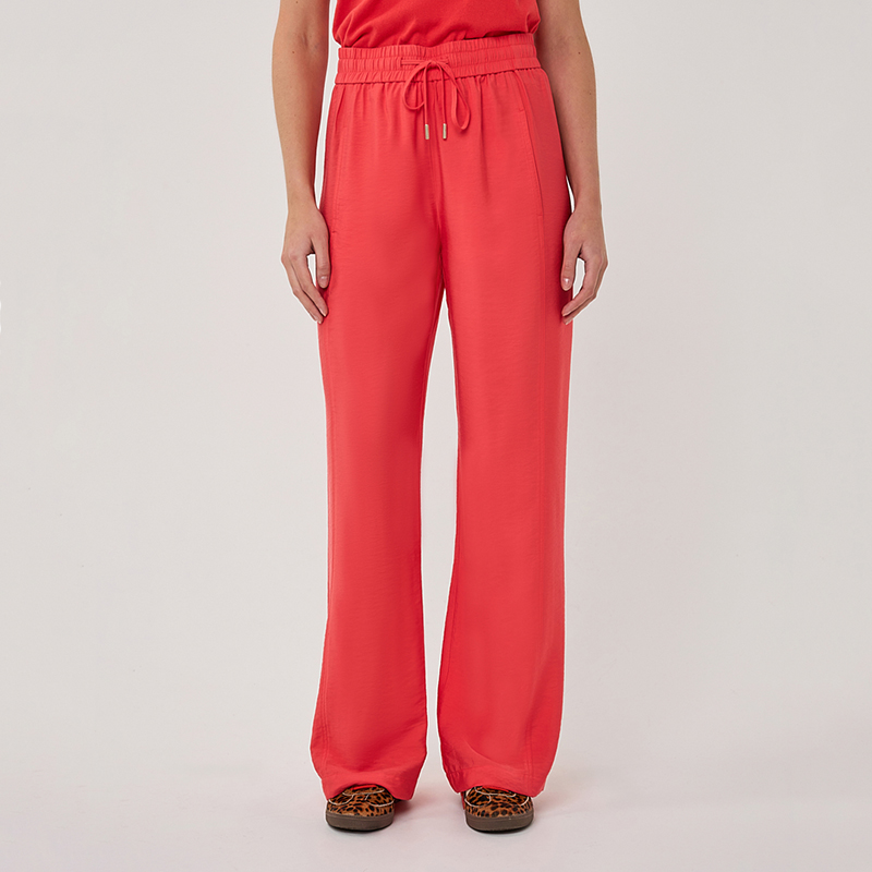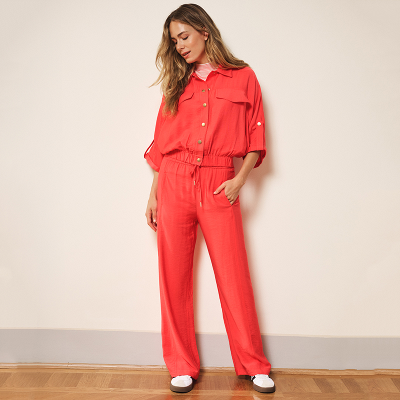 Modèle jambes larges, poches en biais de chaque côté, disponible rouge, Jacket assorti.