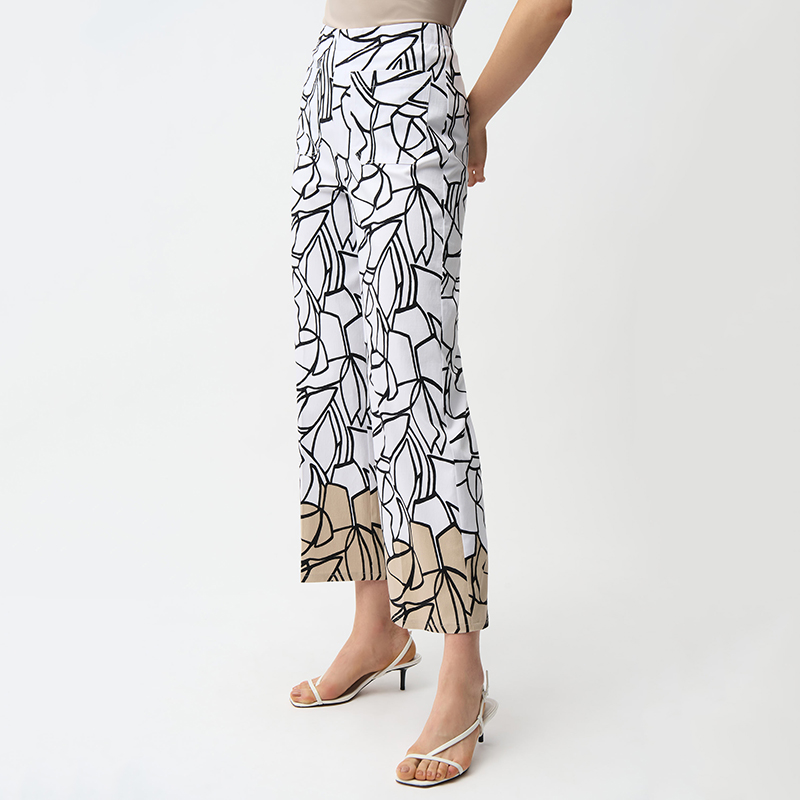 D’une audace naturelle, ce pantalon à enfiler à jambe large présente un imprimé abstrait, des poches plaquées et une ceinture élastique confortable.