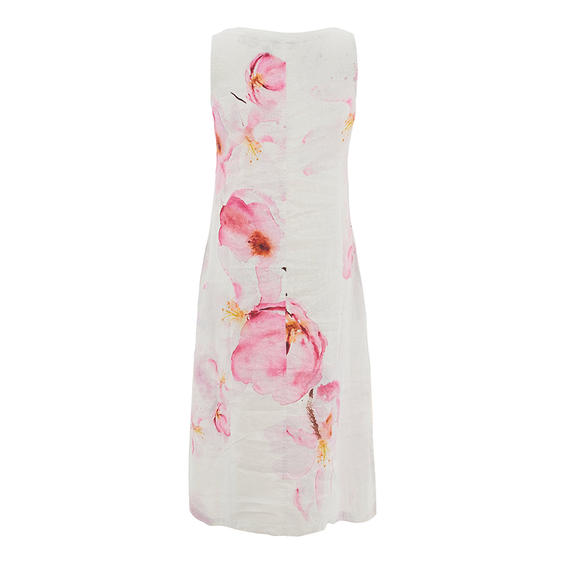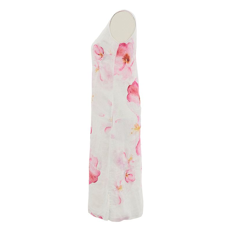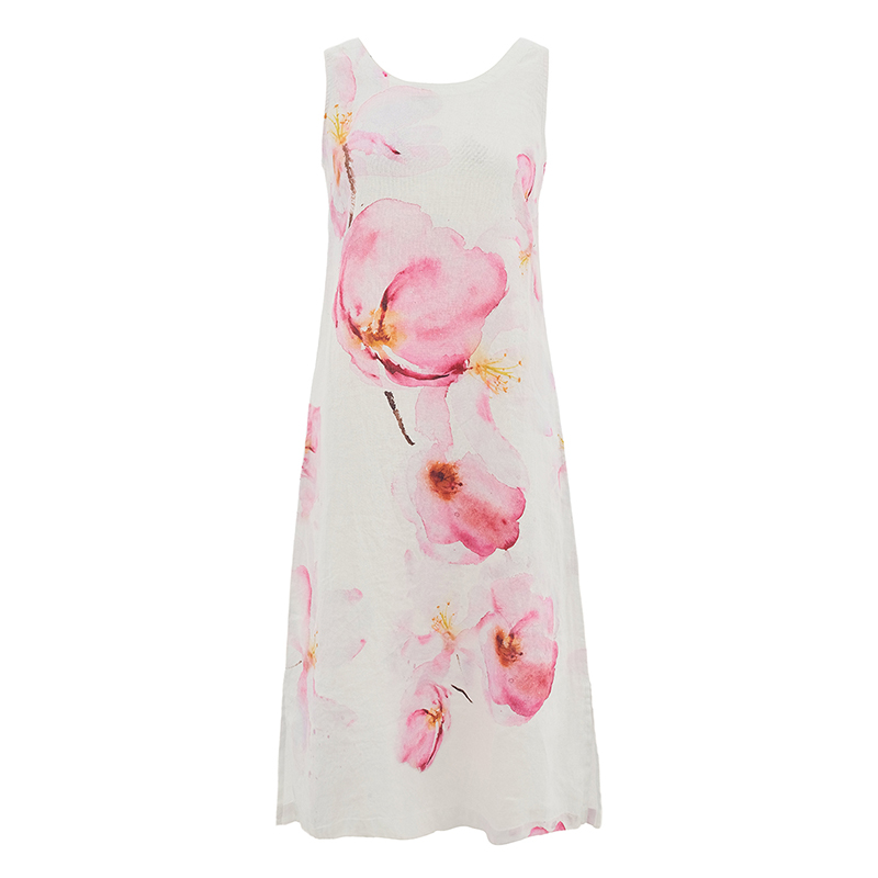 Robe longue en lin, sans manche, bretelles larges, encolure ronde dégagée.