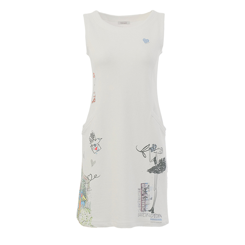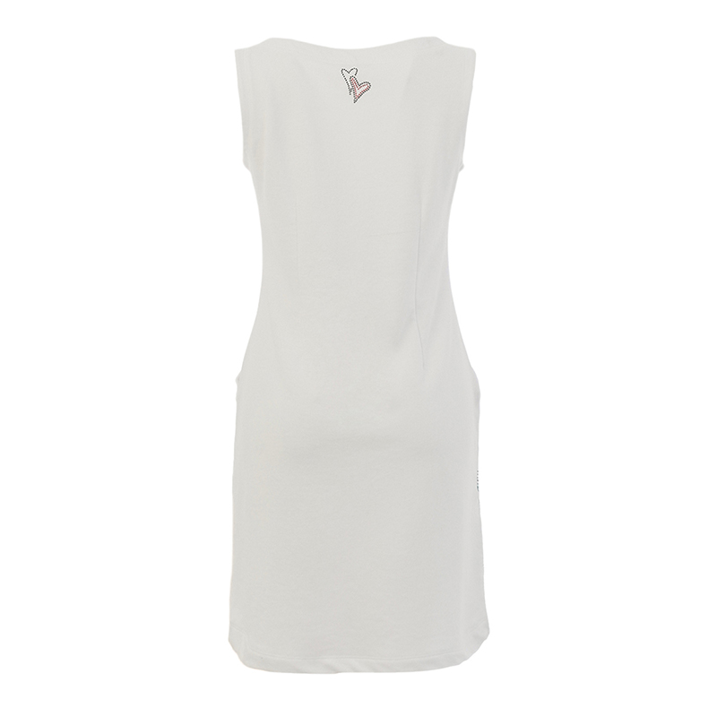 Robe courte en tricot de coton léger, sans manches, encolure ronde.