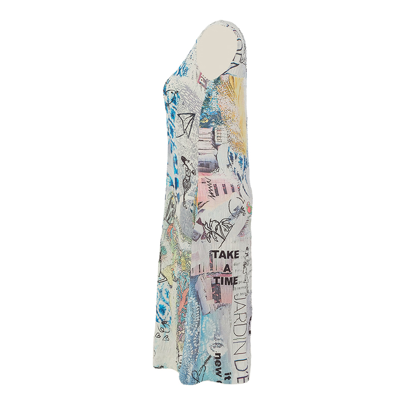 Modèle droit en jersey léger et extensible avec un effet gaufré, poches dans les coutures de côté.