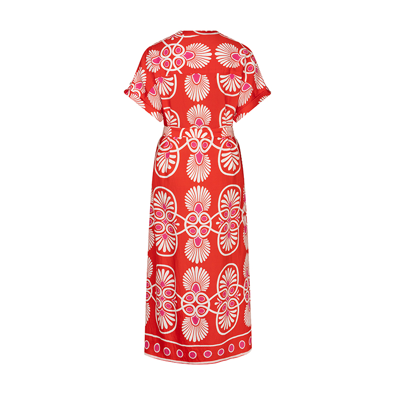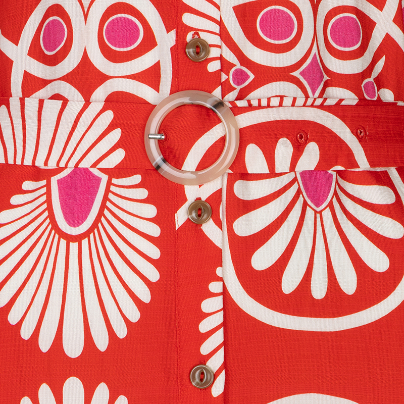 Bel imprimé rouge estival, aspect lin sans le côté froissant.