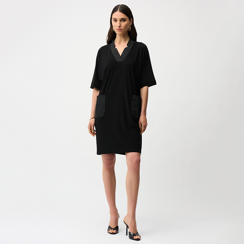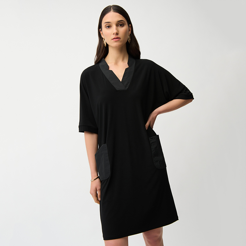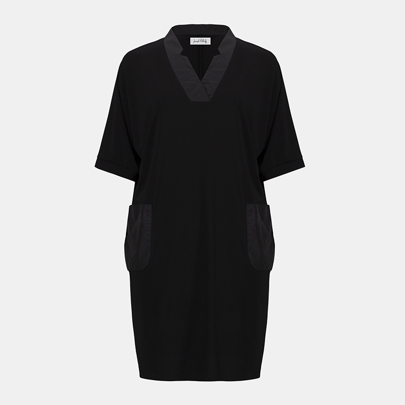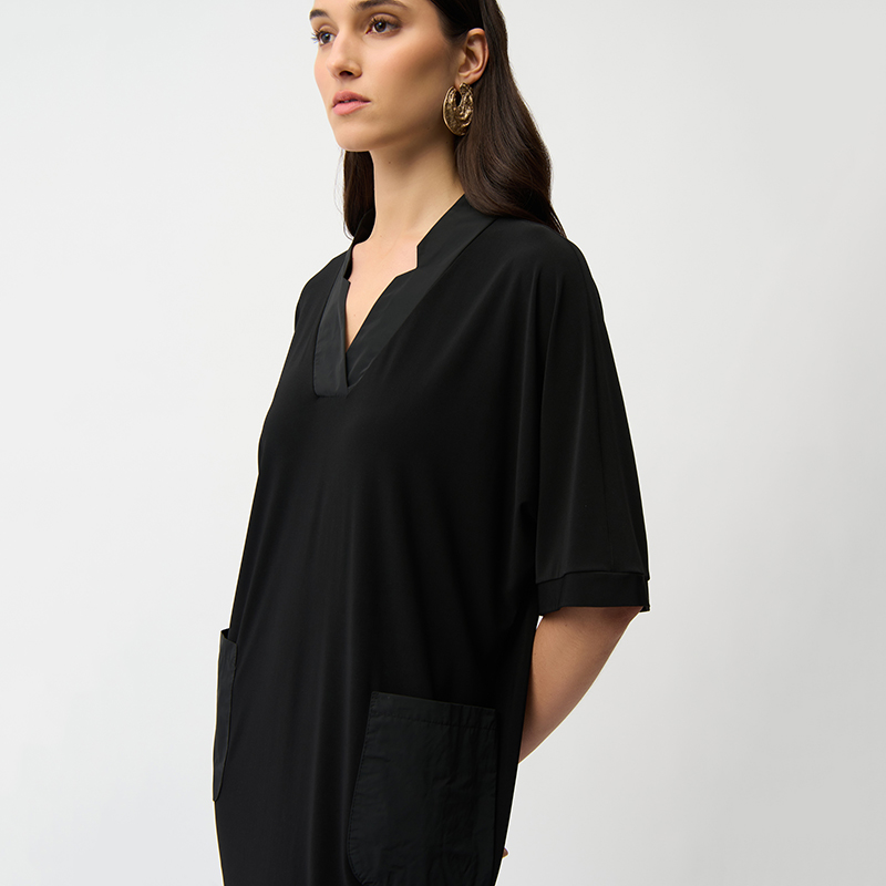 Robe en jersey légère et confortable à manches courtes sans coutures aux épaules, encolure en pointe.
