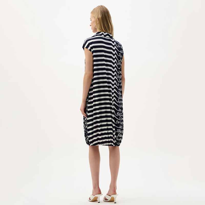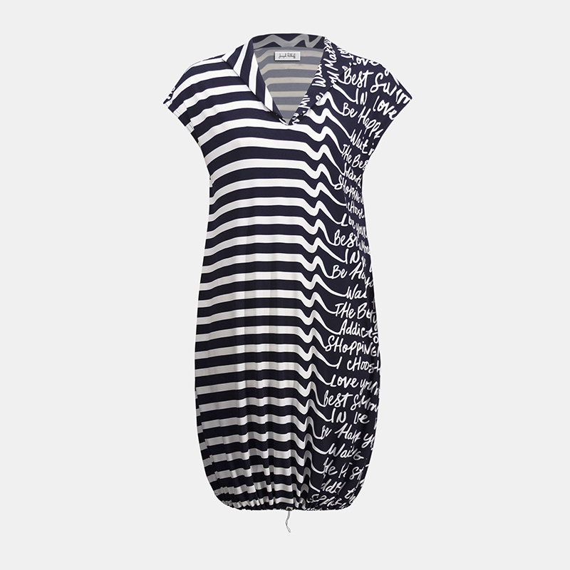 Modèle ample et stylisé, poches dans les coutures de chaque côté, élastique ajustable au bas pour un effet ballon, marine et vanille.
