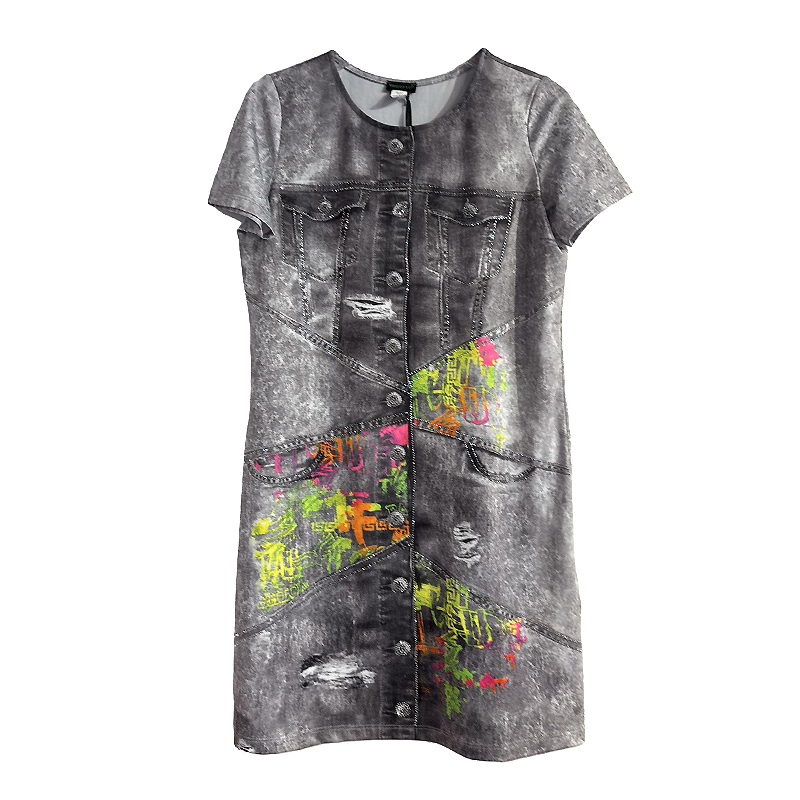 Modèle semi ajusté imprimé gris multicolore effet denim.