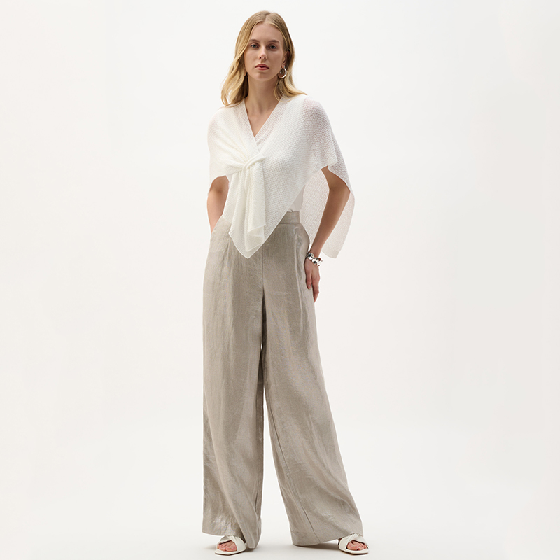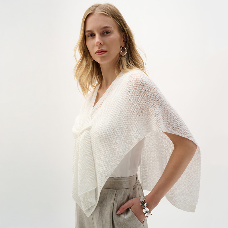 Shawl court en tricot fin, encolure ouvert en pointe, bande en tricot pour drapée au devant!