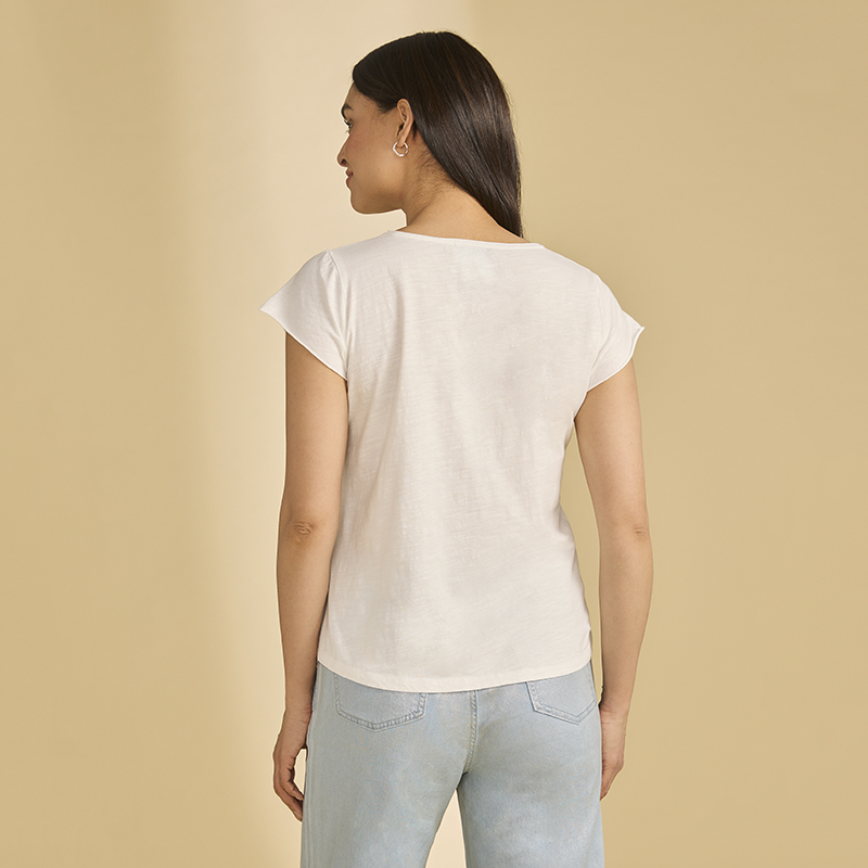 T-shirt à manches courtes, sans finitions, encolure ronde dégagée.